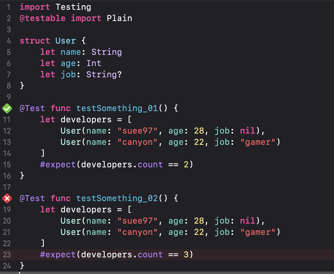 #expect(조건) 방식으로 작성할 수 있습니다.