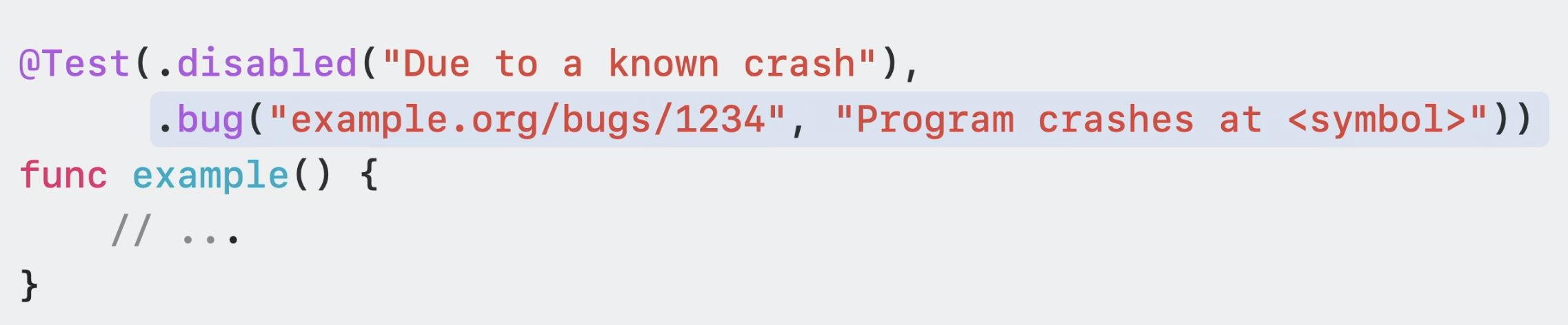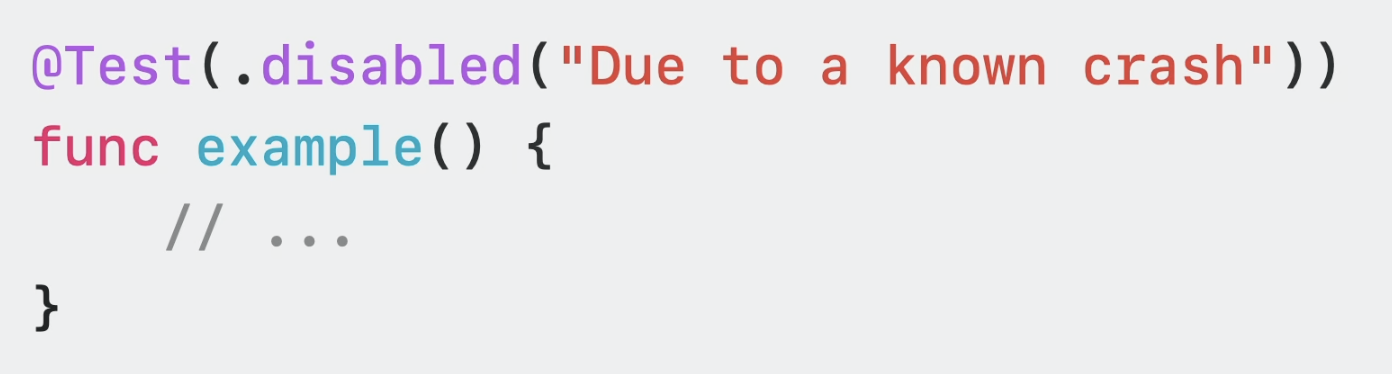 이렇게 suite를 명시할 수 있지만, struct 안에 @Test attribute가 들어가면 암묵적으로 저 sturct는 test suite입니다.