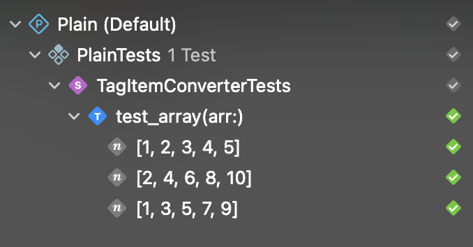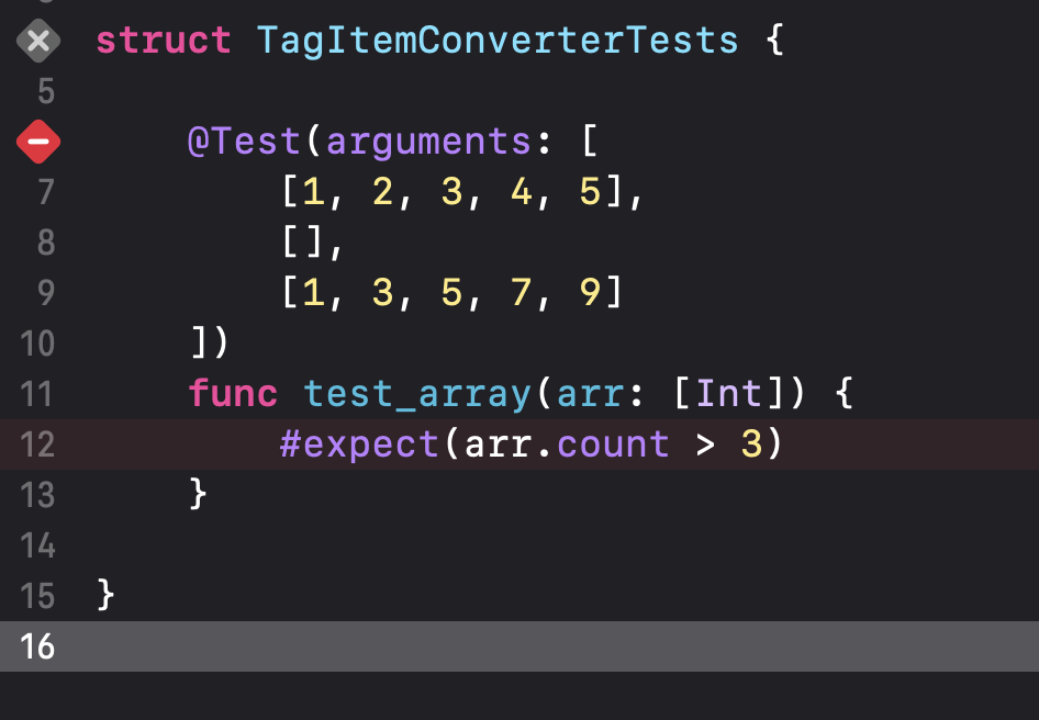 코드일부가 화살표에 가려져있는데 struct TagItemConverterTests입니다.