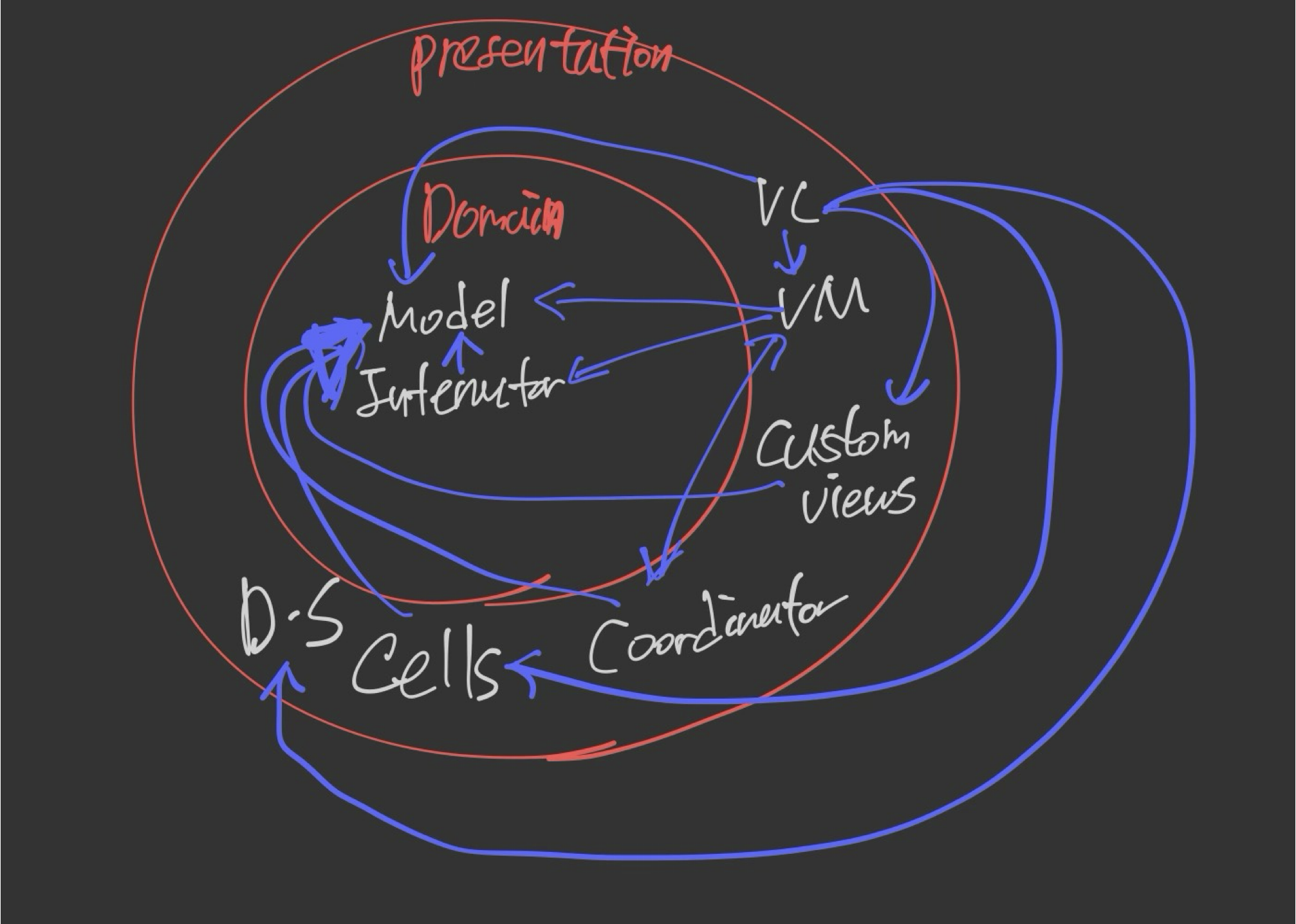 domain layer + presentation layer + mvvm